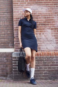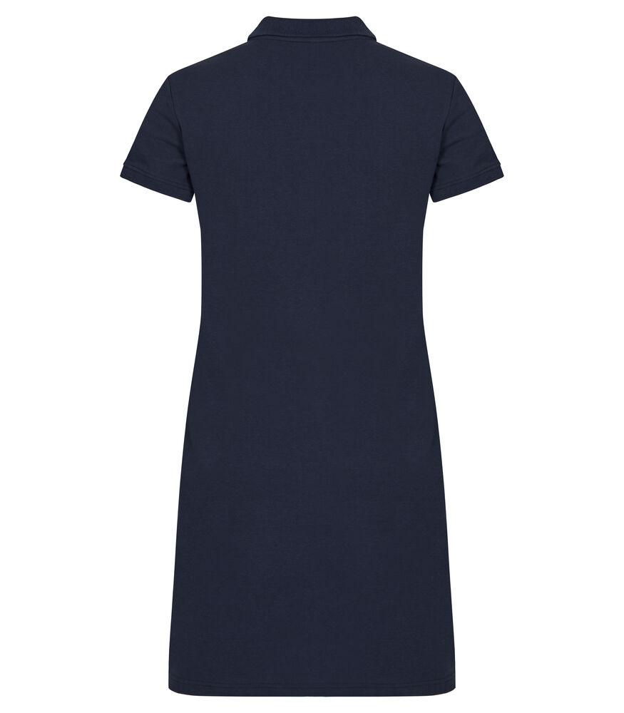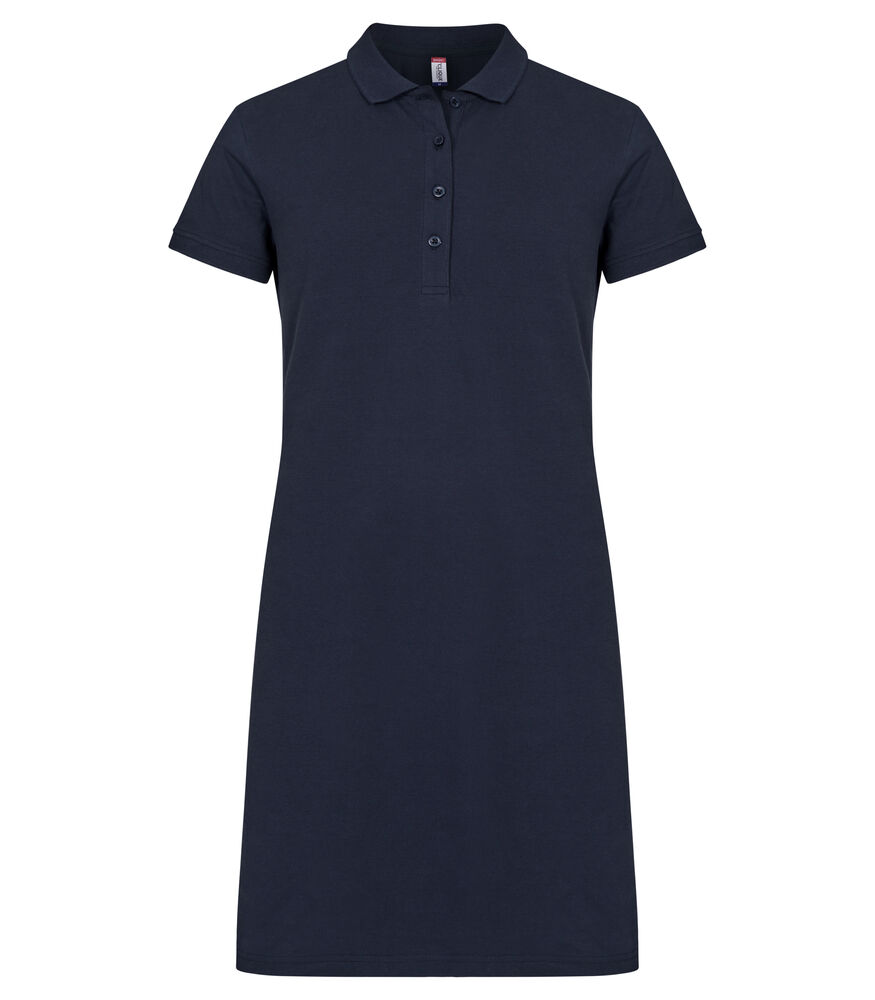 En tidløs polokjole. Sidespalter og fire ton-i-ton knapper. Forsterket nakketeip og en lett avtagbar etikett for rebranding.