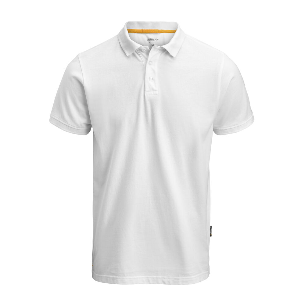 Piqueskjorte, glattstrikket med 3 matchende knapper i knappestolpen. Splitt i sidene. Krage og mansjetter i ribbestrikk. Orange kantbånd på innsiden av halsåpningen og i splitt. Dekorativt merke på høyre erme (kun fargen 7600 Olivengrønn). Sertifisert i henhold til Oeko-tex.